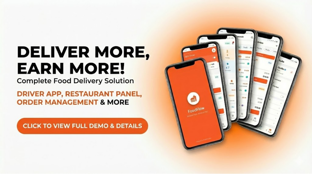 Stop spending months designing and coding your food delivery app from scratch. FoodFlow Pro gives you everything you need to launch faster!